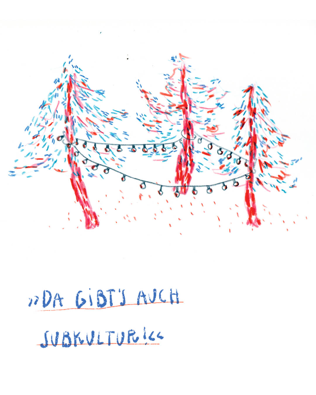 Wir gehen den Dingen auf den Grund: Begegnungen, Episoden und ein roter Faden. Zwischen zwei Ausdrucksformen – Text und Zeichnung – entspinnt sich die Möglichkeit eines Dazwischens. Ein Dialog findet statt.
